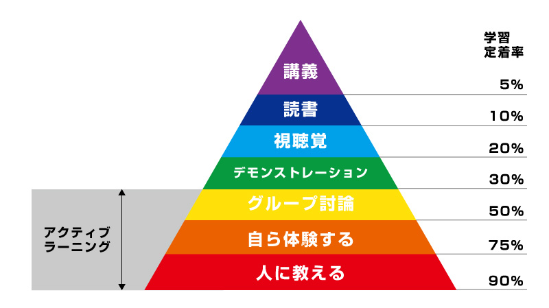 - 「ラーニングピラミッド」に基づき『自ら考える』を重視する